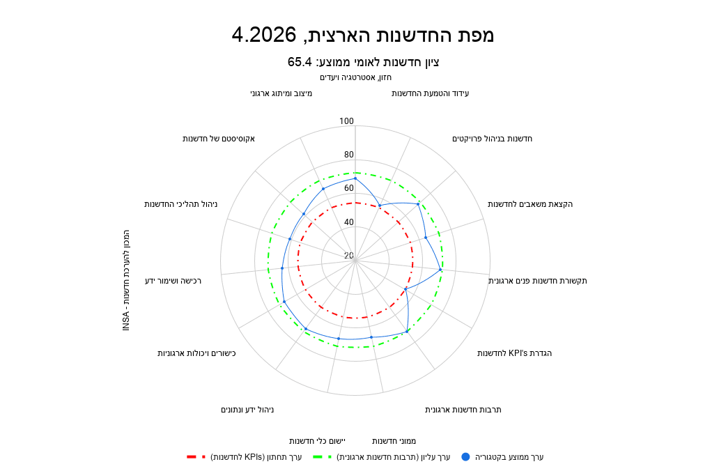 65.4 – ציון החדשנות הלאומי הינו ציון ממוצע יחסי המשקף את רמת החדשנות בענפים השונים המשתתפים במדד החדשנות.