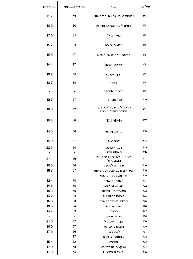 הדו"ח כולל ניתוח מעמיק של מצב החדשנות בישראל ודירוג הארגונים המובילים בכל ענף.